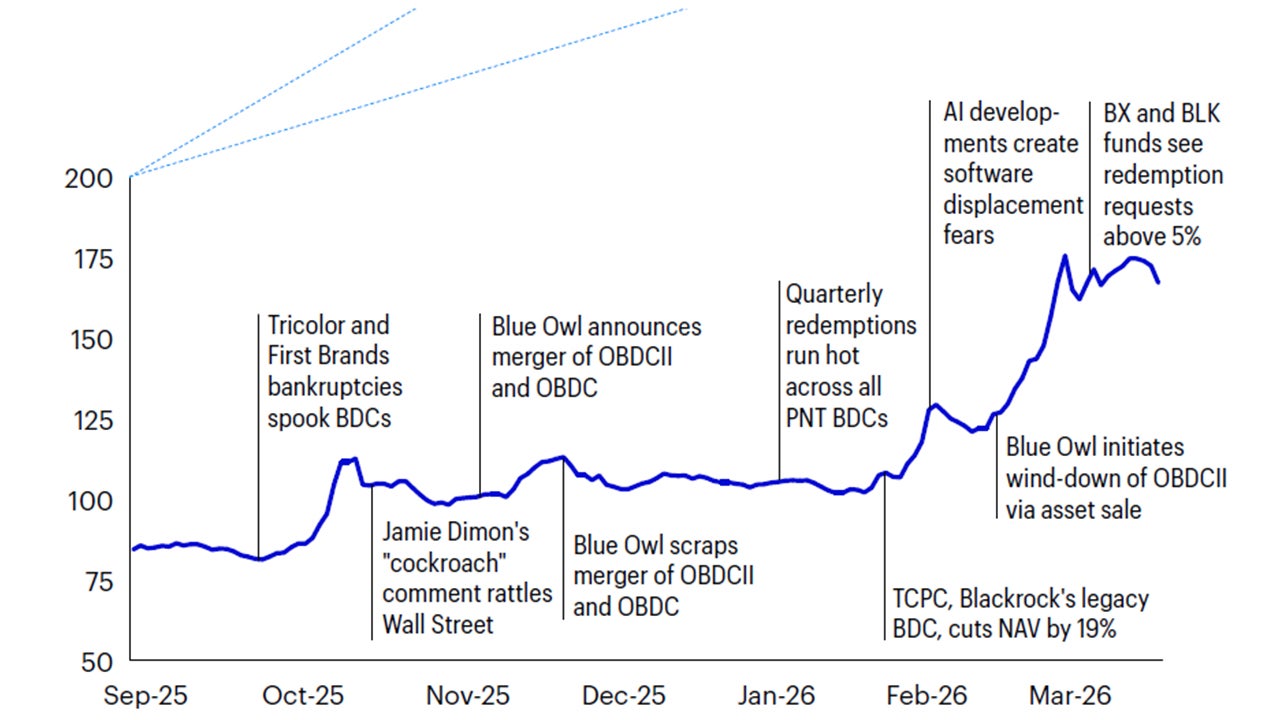 Negative sentiment continued through the winter as BDC mergers were announced and then cancelled, redemptions from PNT vehicles increased, concerns about software exposure escalated, and scrutiny over the validity of loan marks intensified. We attribute much of the skepticism to the rapid growth of BDCs, coupled with the absence of a full credit-cycle track record for many of them. We believe the current environment provides a constructive test for them: Asset quality and liquidity management should ultimately reveal differentiated performance across the sector.