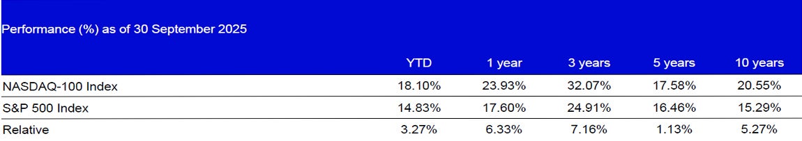 Data: Bloomberg, L.P., as of 30/09/2025. An investor cannot invest directly in an index. Past performance does not predict future results. All data is in USD unless indicated otherwise.