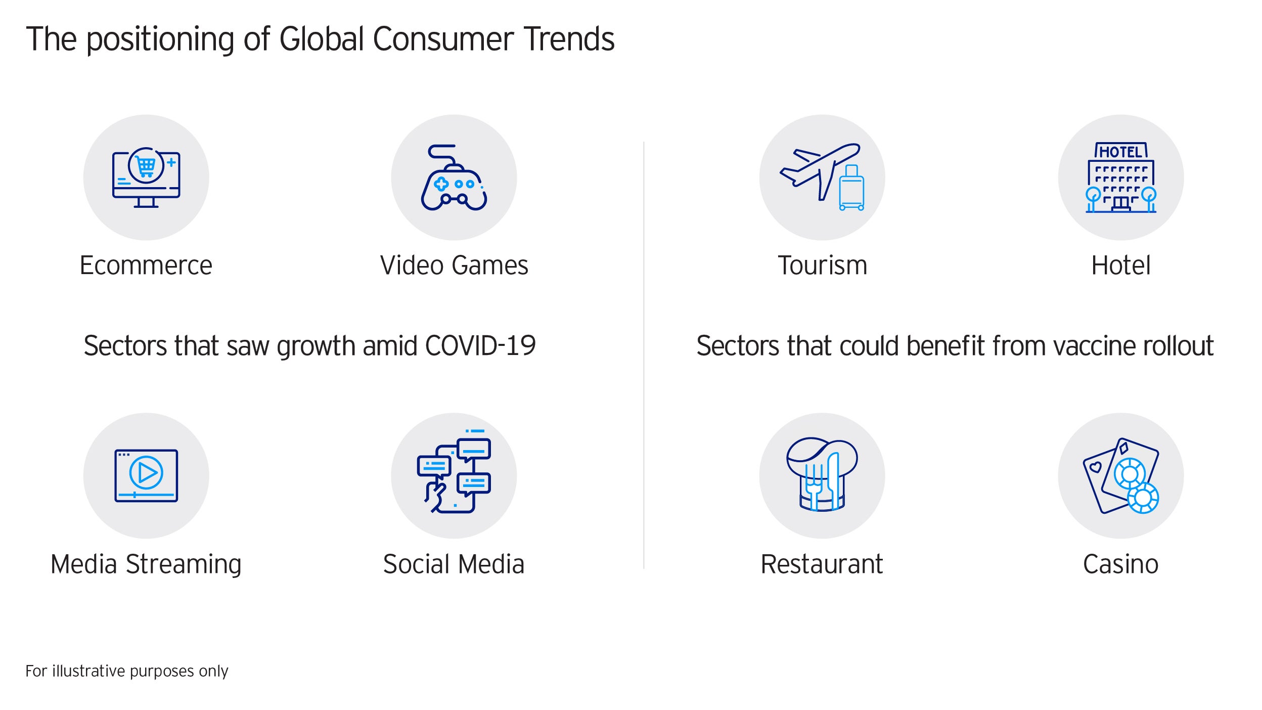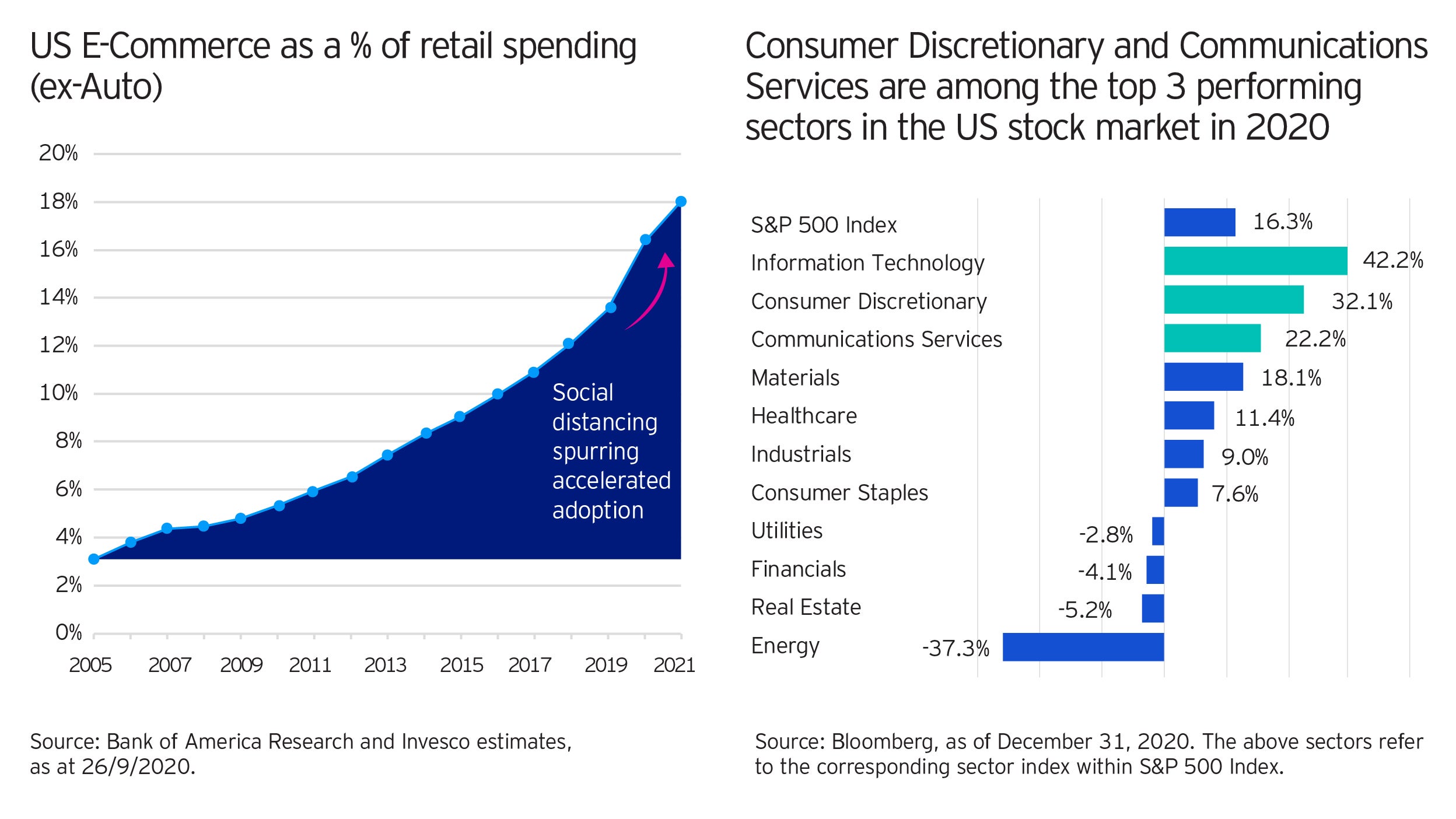 Changes in consumption patterns are happening everywhere, creating long-term investment opportunities. Ecommerce and Entertainment are among some of the key themes which saw significant growth. In 2020, consumer discretionary and communication services sector equities saw strong performance vs the broader market.
