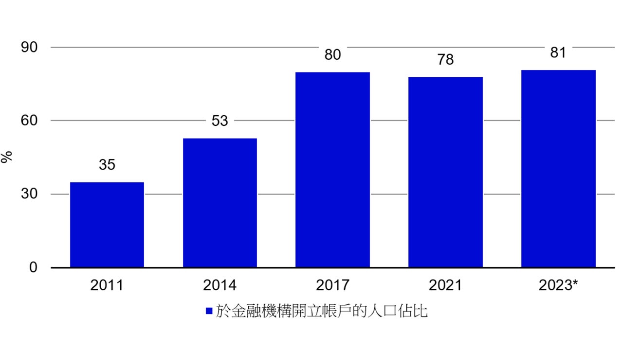 資料來源:世界銀行Global Findex database,2023年12月。*2023年數據基於瑞銀估計