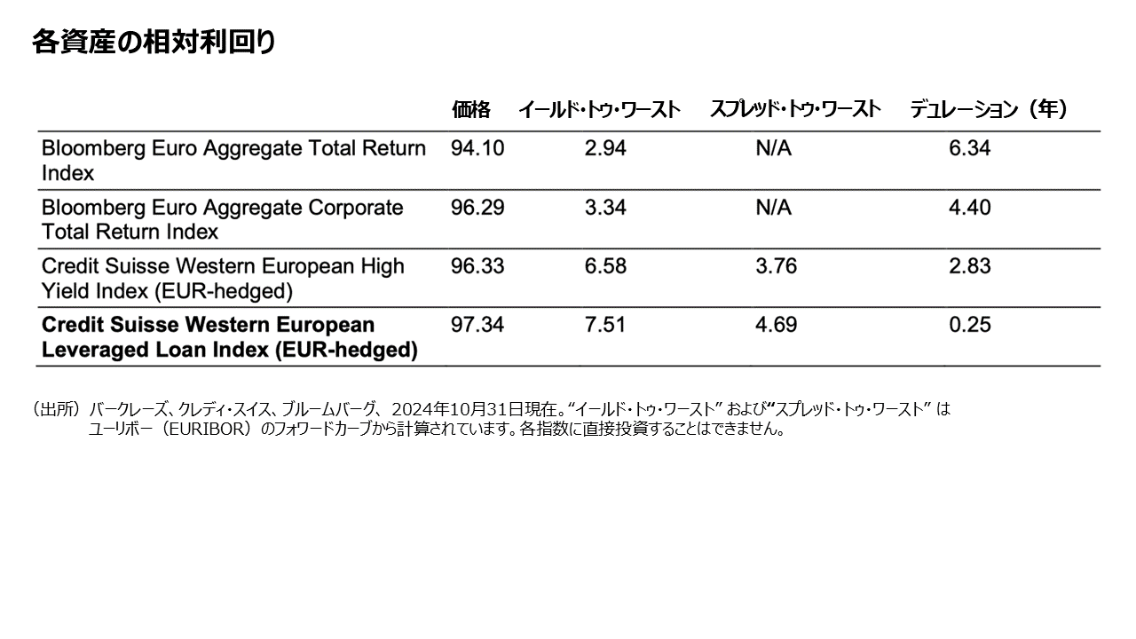 2024年10月の欧州バンクローン市場は、相対的に高く安定したインカムがプラスに寄与し、月間トータル・リターンは+0.78%となりました。