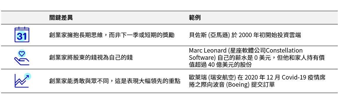 創業家或擁有者之企業,與股東利益一致,對待股東的錢就像對待自己的錢一樣