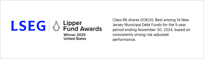 Overall Rating - Muni New Jersey CategoryAs of 11/30/2025 the Fund had an overall rating of 5 stars out of 41 funds and was rated 5 stars out of 41 funds, 5 stars out of 41 funds and N/A stars out of 34 funds for the 3-, 5- and 10- year periods, respectively.